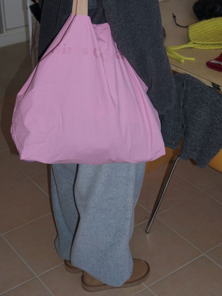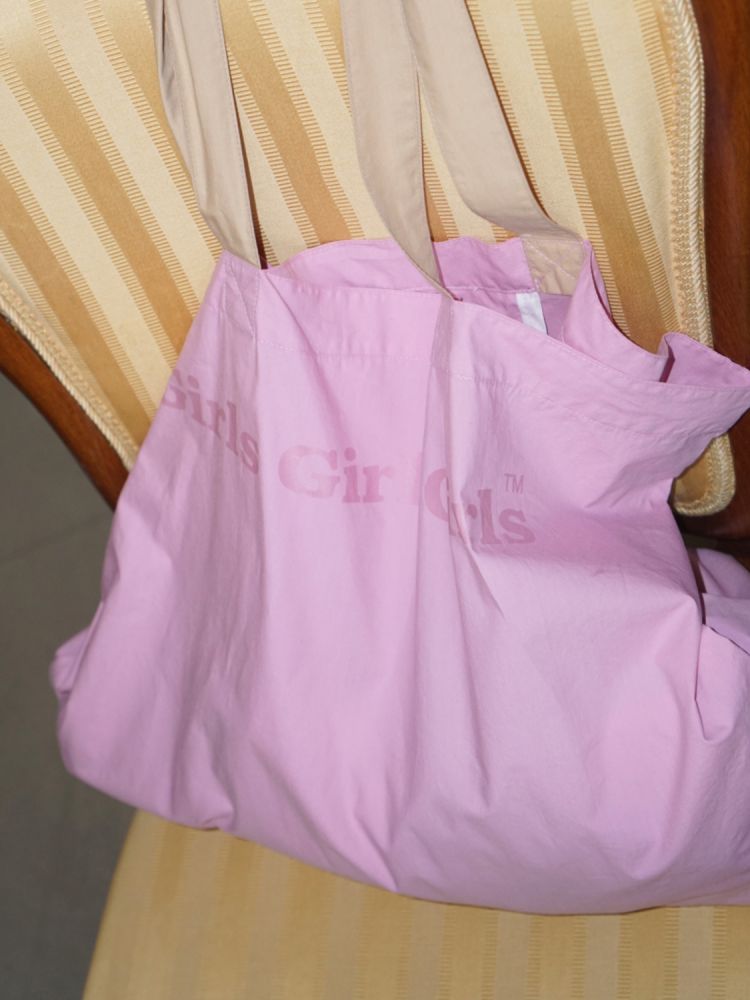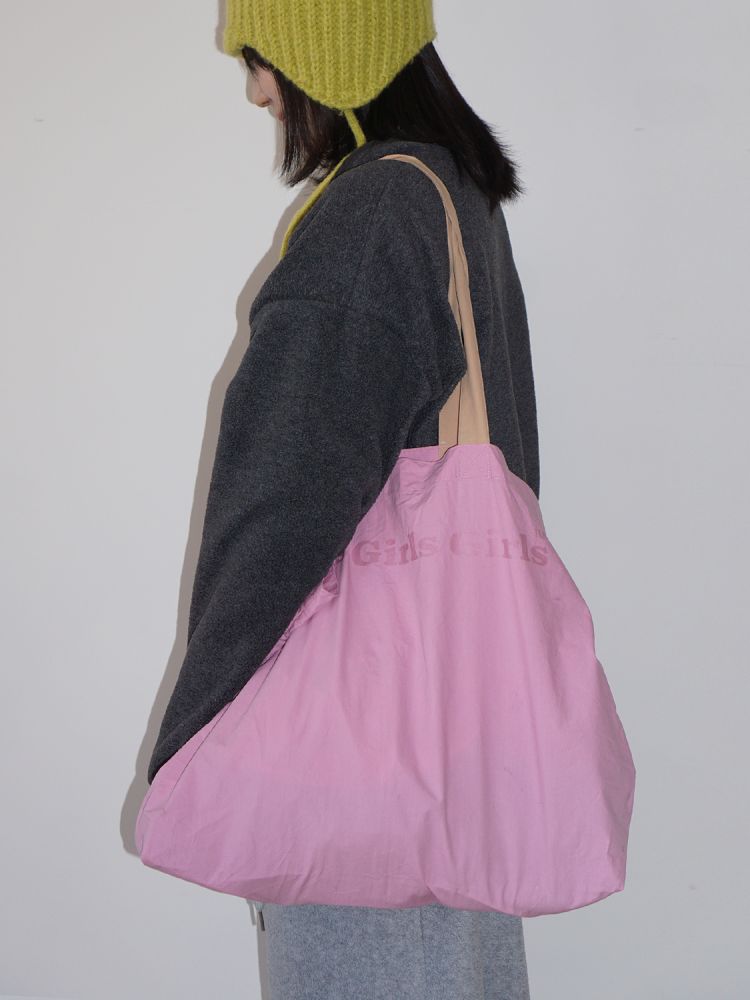 Girls Girls Girls”のプリントが施されたショルダーストラップとの配色が可愛い、ビッグショルダーバッグです。。